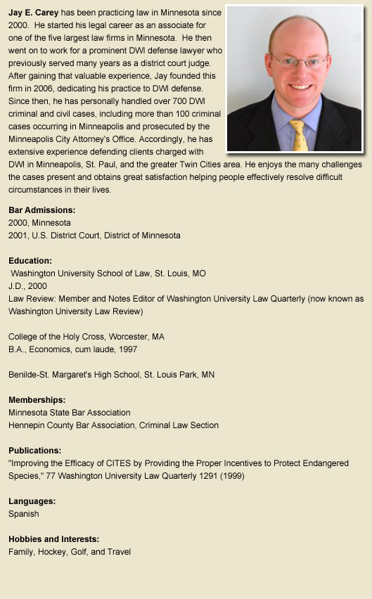The law offices of Minneaoplis DWI Attorney represent individuals who have been arrested for DWI or DUI in Minneapolis, MN. We are available 24 hours a day to answer any questions that you may have regarding your DWI/DUI case. Contact my office to speak to me an experienced Minneapolis criminal attorney.